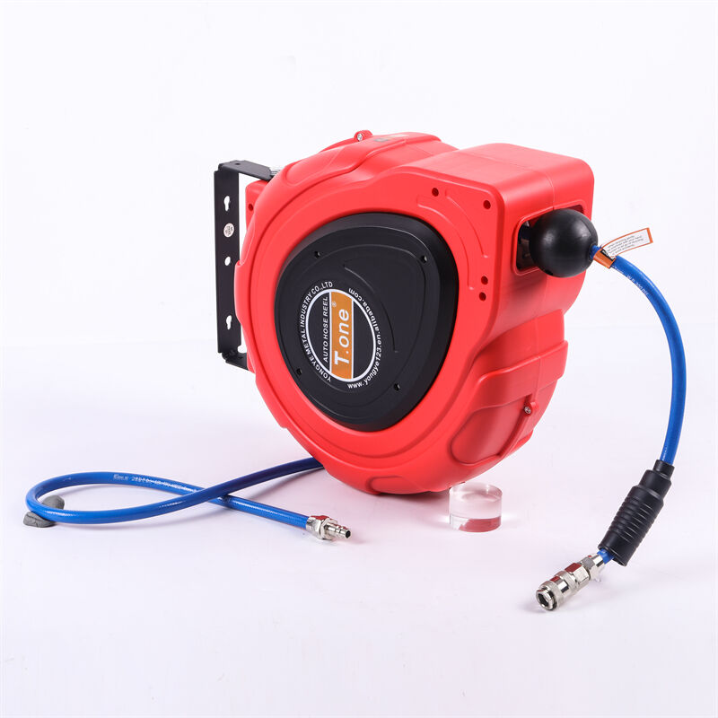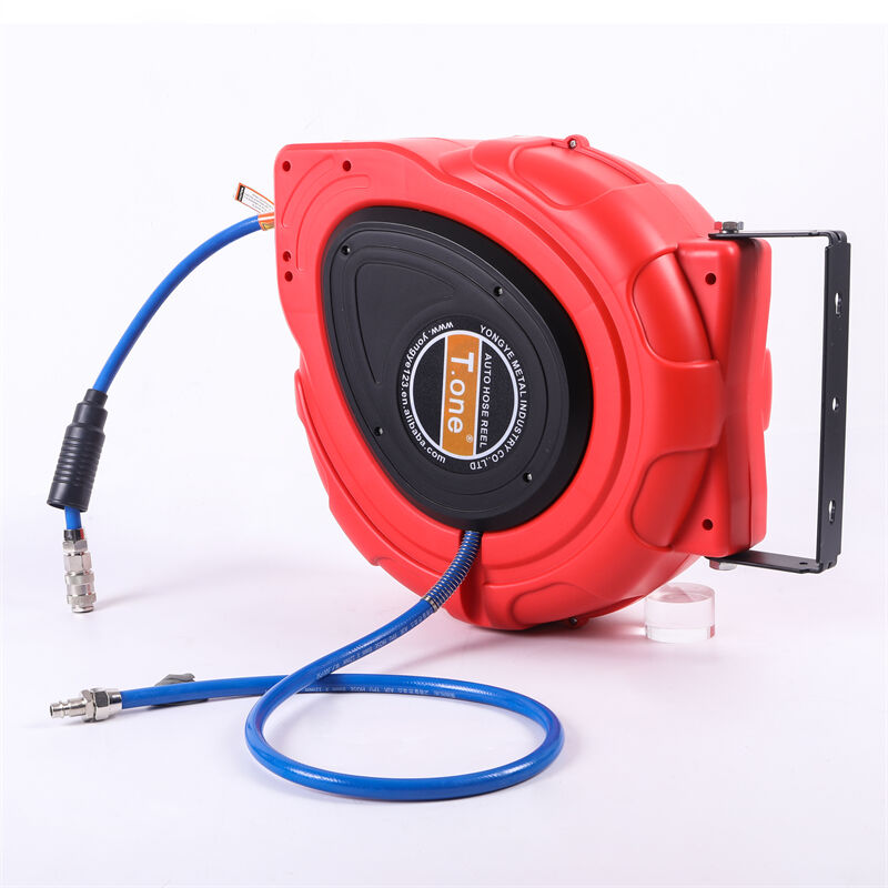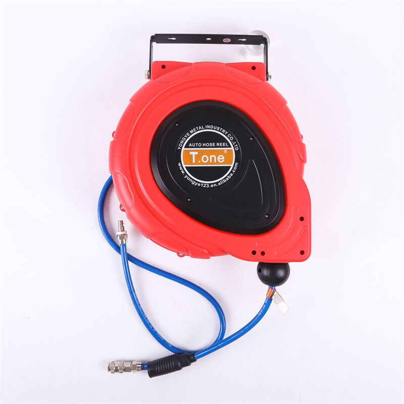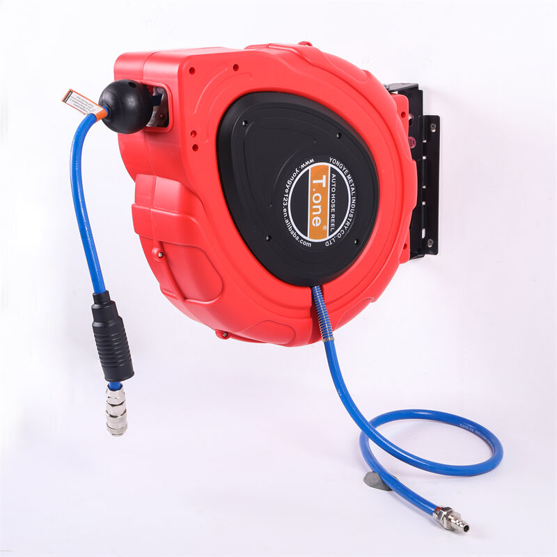 Autopuhastusettevõttes kasutatav seinale monteeritav tagasitõmbuv õhutoru-keri