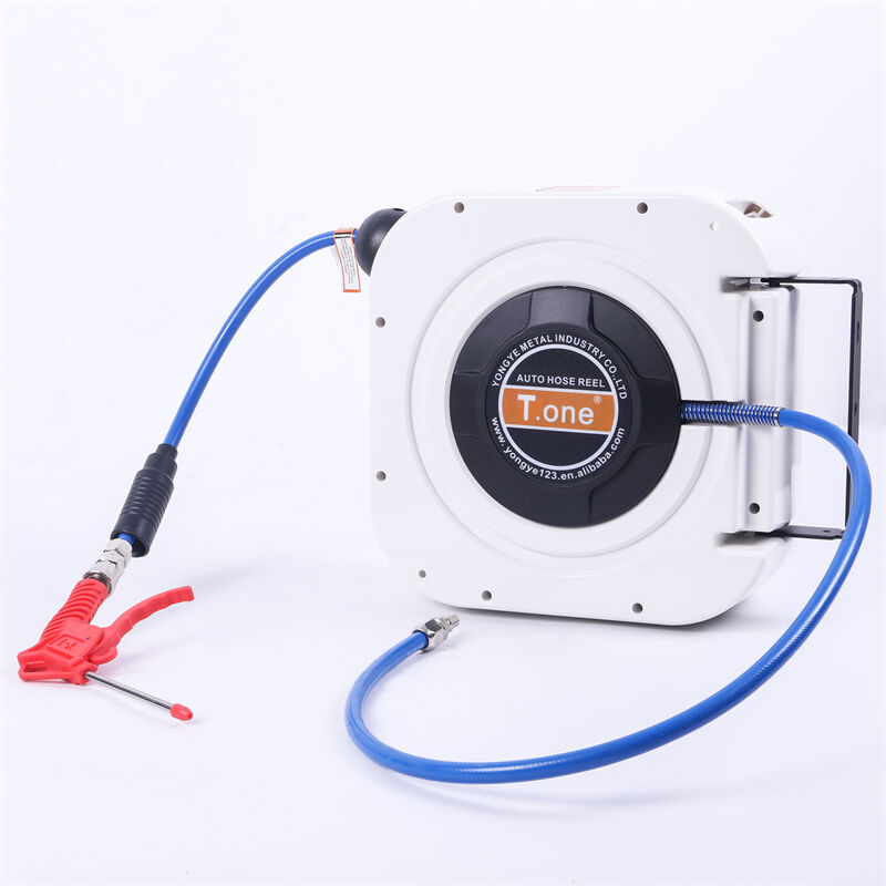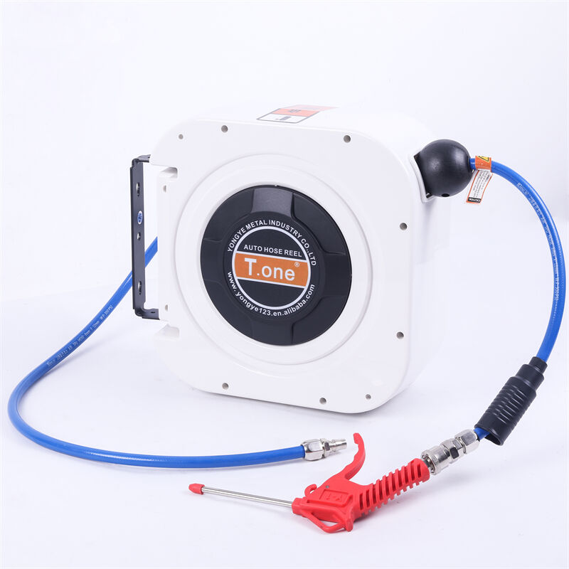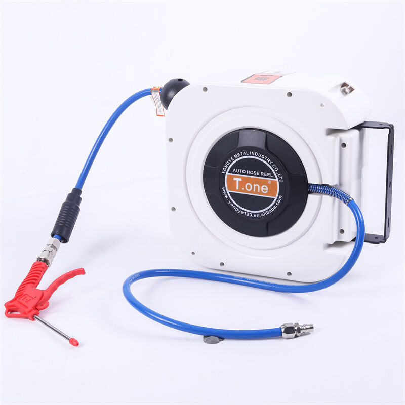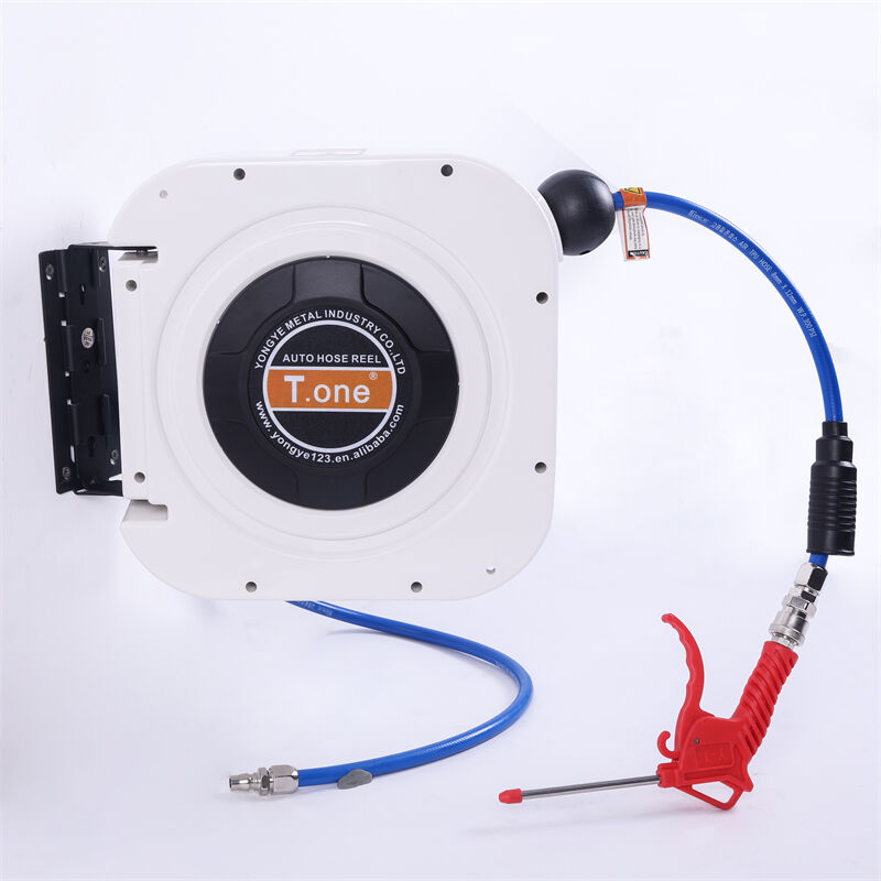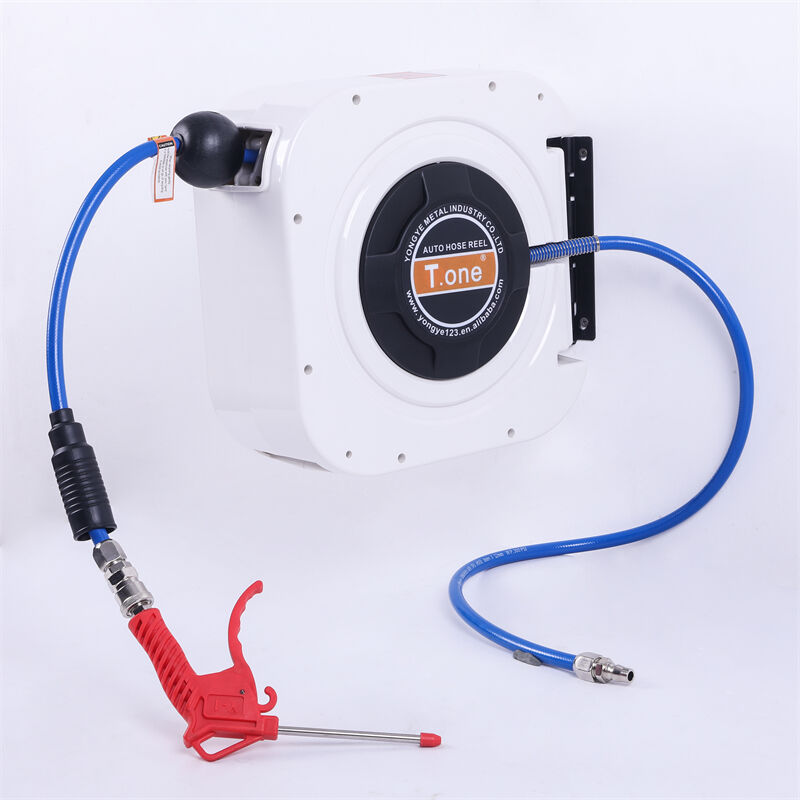 T.one air hose reel is a high-efficiency cleaning tool specially designed for car beauty salons. It integrates a high-pressure water gun with an intelligent hose reel system. It is mainly used for car cleaning, waxing, and maintenance, allowing for quick and convenient vehicle cleaning tasks Its core function is to quickly dry the vehicle's moisture through high-pressure airflow, avoiding water stains, while also cleaning dust and impurities from gaps to ensure a spotless vehicle. This product features a lightweight design with its compact structure and durable material making it an ideal choice for car detailing shops. It offers flexible operation, significantly increasing work efficiency and saving time and labor costs.